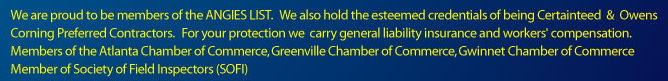 Please contact us for all of your roofing needs. We are available 24 hours per day. We service Georgia, South Carolina, Alabama and Tennessee